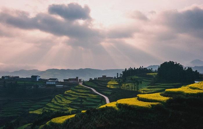 当四川大部分地方温度很低的时候,攀枝花市米易县迎来了四川最早的春天。每年二月左右,5000亩油菜花已开放,天高云淡,清风相伴。盛开的油菜花延绵不断,到处是一片金黄。和煦的阳光中,弥漫着阵阵油菜花的清香,让人陶醉。