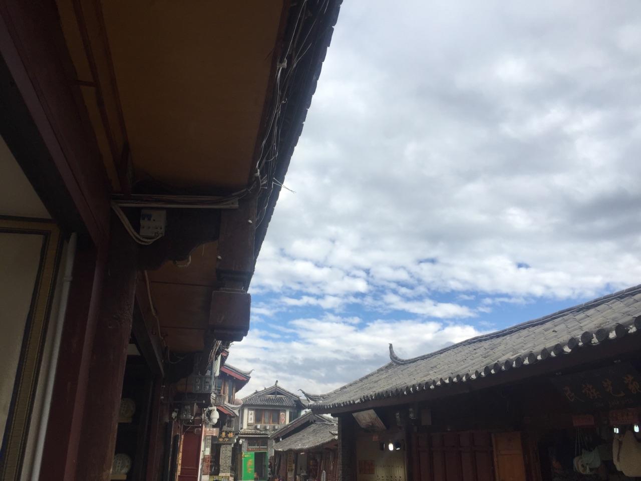 街道两边全是店铺,卖各色工艺品。走几十步就有一个岔路口,路口有道小桥,桥下河水哗哗地流。接下来又是一条街延伸过去,各不相同又似曾相识。一杯茶配上蓝天,可以心满意足地消遣一下午。