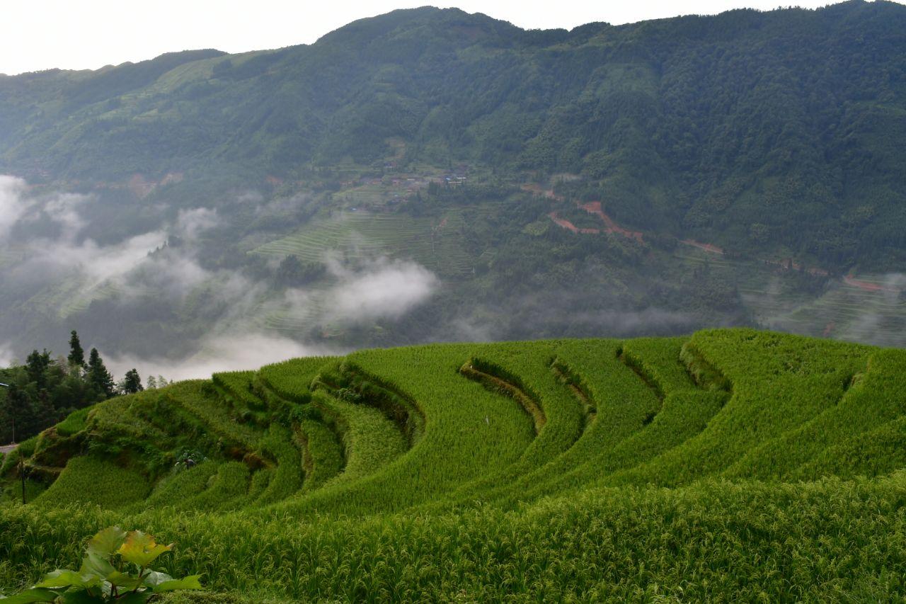 梯田中散落着苗乡特有的吊脚楼,是苗族人世世代代留下的杰作。苗族是“稻饭鱼羹”的民族。加之梯田紧靠加车河,而且常年雨水充沛,无论春夏秋冬,每天清晨,一层层云雾从河边缓缓升起,这些美丽的景象被笼罩在云雾中,若隐若现,飘渺悠然……