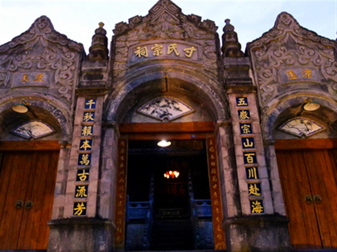 寸氏宗祠又称寸家祠堂,位于云南省腾冲县和顺古镇,祠堂是汉民族祭祀祖先或先贤的场所,是和顺古镇的标志性建筑,也是腾冲寸氏宗族的象征。从内到外建有正殿、厢楼、花园、客堂、大厅、二门、大门, 大门外有两层石月台,临门月台高出乡前通衢175cm,左右两边有石标杆,每棵杆上有两个石斗(为清光绪乙未科进士寸开泰所立)。通衢外又有一个更大的月台,前有荷池一塘,眼界开扩,风景无限。