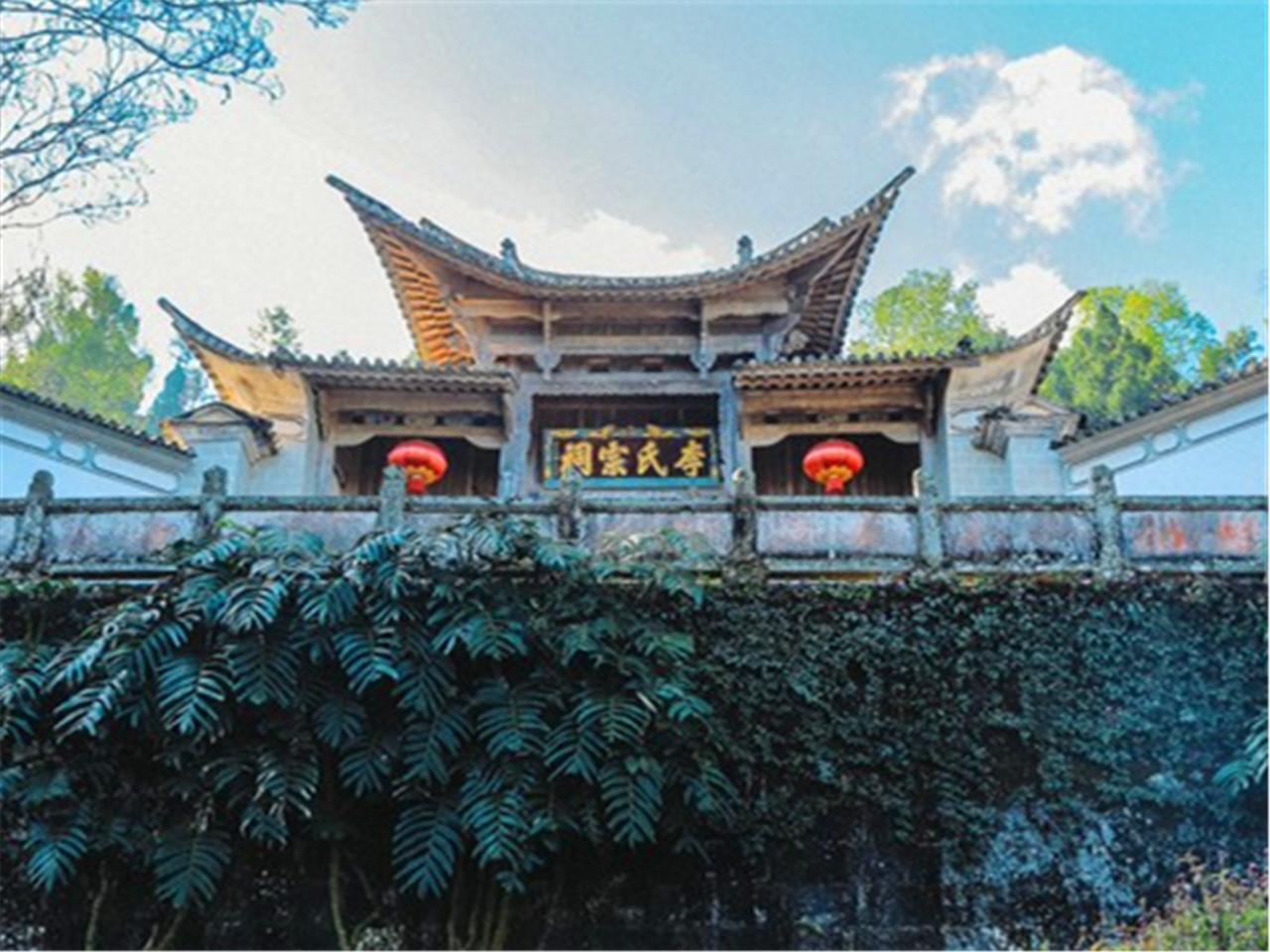 李氏始祖赫师波,明代洪武年间由重庆巴县随军到腾冲戍边,后居阳温登。宗祠依山而建,因地势陡斜,劈山填土,施工极为困难,自民国九年(1920年)破土动工,到民国十四年(1925年)竣工,历时六年。李氏宗祠以布局宏伟、地势高峻、视野开阔、风景优美而著称。进入二门,庭院宽敞,园林清幽,花木扶疏,每当春来之时,桃花、梅花、樱花盛开,姹紫嫣红。大殿巍峨辉煌,中堂正面神龛中,立有红底金字“大明从征卫所千户始祖赫师波李公之神位”牌位。两边厢楼,卧檐飞角,展翅临空,宏伟壮观,厅堂内为族人会聚议事,招待宾客之处。春秋祭祀之时,裔孙集聚一堂,烟云缭绕。和顺李氏族人遍居海内外,一旦回乡,这里也就成为他们的寻根之地。