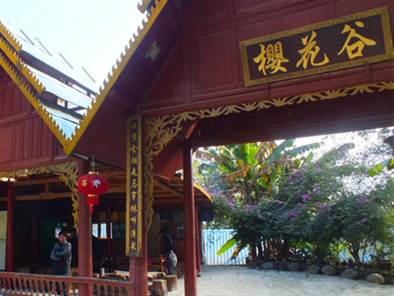 樱花谷景区汇集了高黎贡山亚热带阔叶原始森林,天然温泉群,形态各异的瀑布、溪流、奇石等奇特的地质和地貌自然景观。在不同的海拔生长着不同的植物,从山顶的高海拔针叶林到河谷的蕨类、藤本植物等,还有生长在岩石上的千年阔叶巨树,是高黎贡山自然景观的一个缩影。