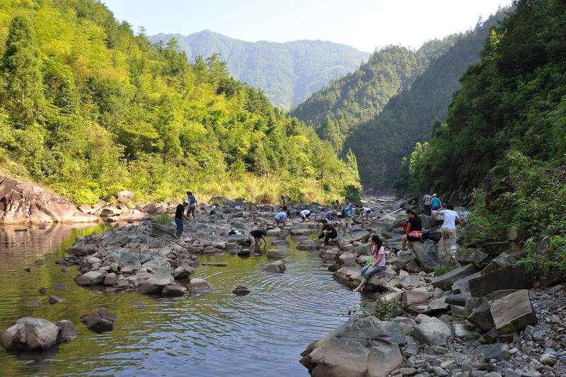 莒溪被誉为“小九寨沟”,溪水极清,蓝天和树影掩映下呈梦幻般的幽蓝色;溪竹夹道,正午时分也难见日光,阴凉惬意。溪水深浅适中,抓鱼、撑竹排、打水仗、游泳、学静浮,是盛夏纳凉避暑、玩水休闲的好去处。