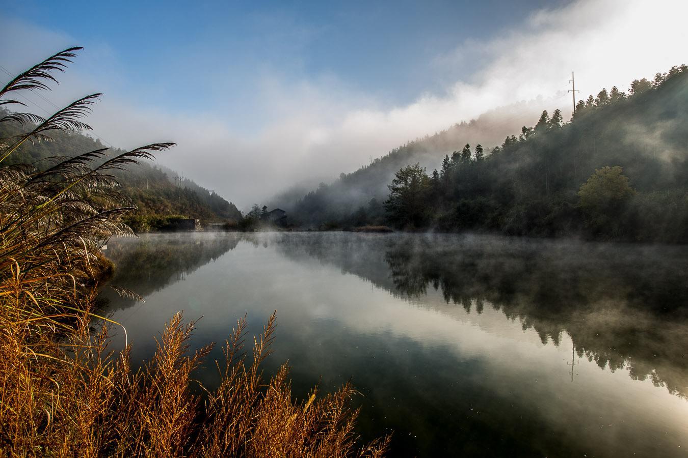 蛟湖距天鹅洞群风景区5公里,系“福建省最深的天然内陆湖”。蛟湖湖水清澈蔚蓝,村舍树影倒映湖中,野鸭游弋荡起涟漪阵阵。