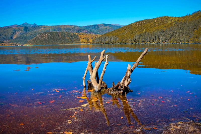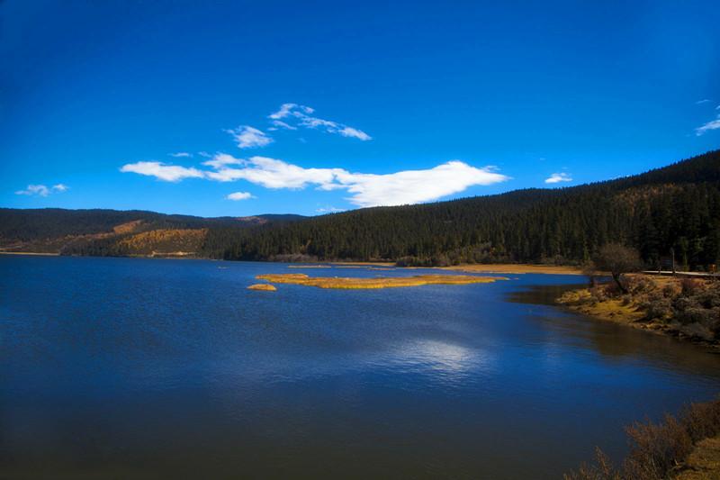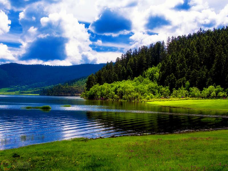 春夏季节百花盛开,湖畔四周一片片杜鹃花丛映红整个湖面,各种野花繁星似地贴着地面开放着。湖岸边,那绿色牧场炊烟袅袅,牛铃声声,充满妩媚与柔情,自然而含蓄。秋冬季节更令人心醉,那一片片白桦林满目金黄,于是,红的、金黄的、白的、翠绿的……交相辉映;白色的云朵映衬着淡淡晨雾,在碧蓝如洗的湖心中,构成一幅幅平静而富有诗意的画面。