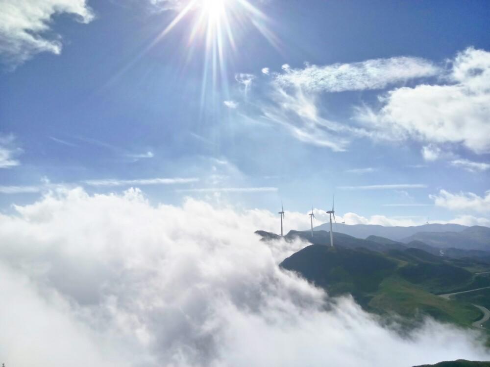 大娄山滑雪场海拔 1780 米,站在山顶,向远处眺望,缭绕的云雾在漂浮于群山之间,多了些许灵动之美。