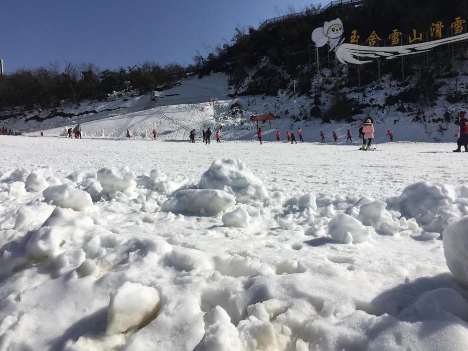玉舍雪山滑雪场也是贵州首家高山滑雪场。有单板公园、雪地摩托、雪地悠波球、雪上飞碟、雪地冲锋舟等项目,能同时容纳3500人滑雪。