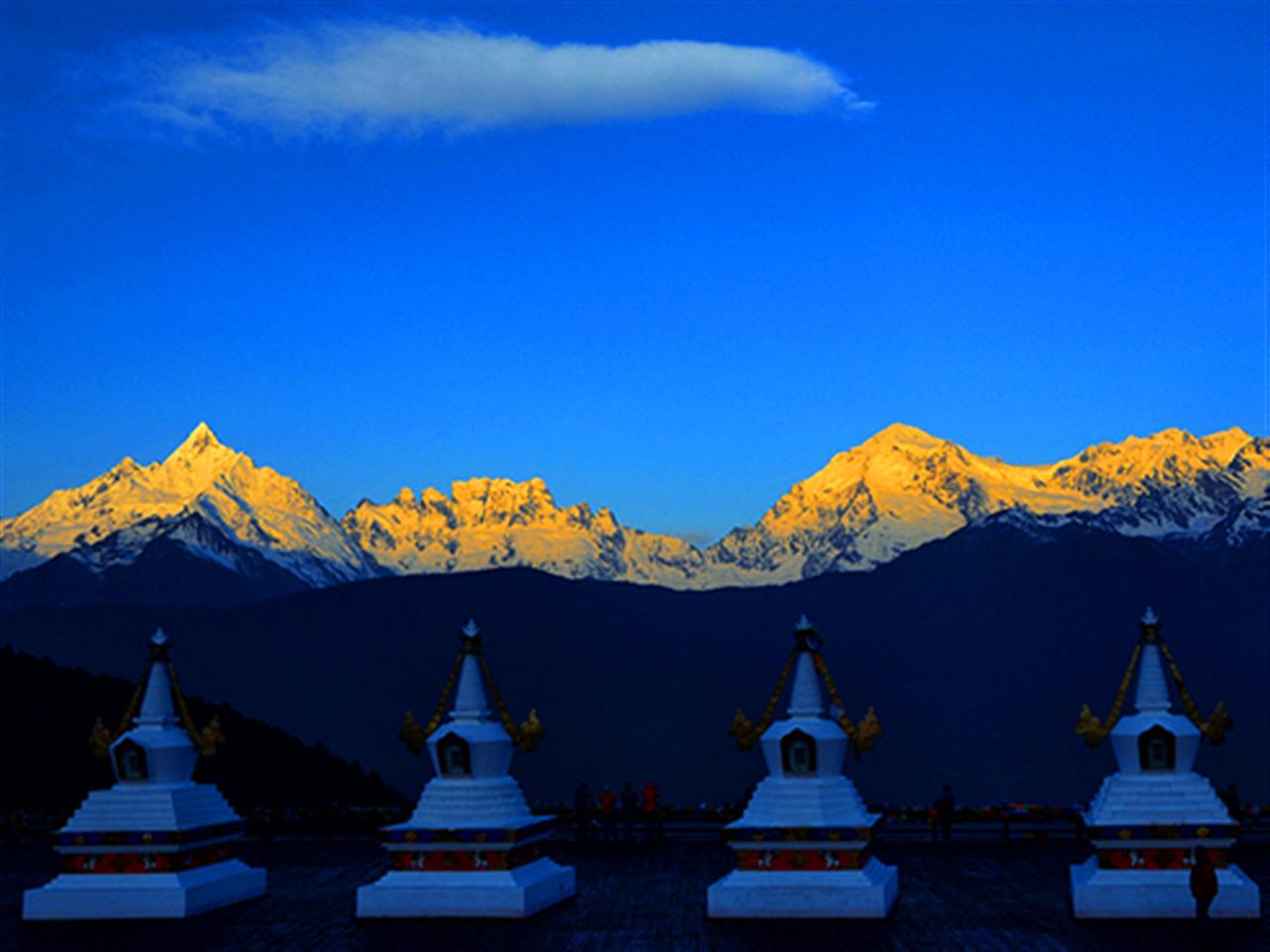 梅里雪山又称太子雪山,是藏区八大神山之首,其著名的“日照金山”是很多人梦寐以求难得一见的胜景。其海拔6740米的主峰至今仍是未被征服的“处女峰”,也是唯一因文化保护而禁止攀登的高峰。观赏梅里雪山的最佳时间是10月至次年5月,这段时间看到主峰及其他山峰的概率最高。