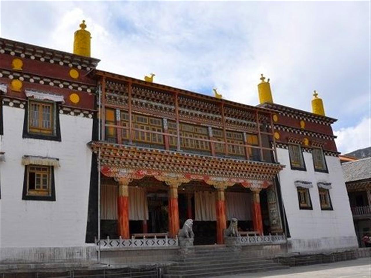 东竹林寺,建于清代(公元1667年),原名“冲冲措岗寺”,意为仙鹤湖畔之寺,为康藏十三林大寺之一。文革时期被毁后,于1985年重新修建。因地处白茫雪山背风凹处,金沙江河谷延伸部分,具有“冬无寒冷,夏无酷暑”的特点。寺内现存一幅长8.5米、宽5.2米的大型唐卡,是由五彩丝线精织而成的护法神像,每年举行跳神法会时展出一次,供香客观瞻礼拜。