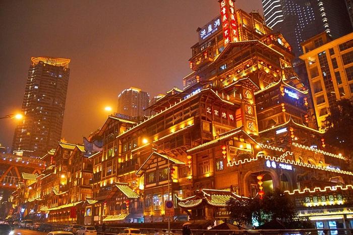 洪崖洞原名洪崖门,是古重庆城门之一, 坐拥城市旅游景观、商务休闲景观和城市人文景观于一体。以具巴渝传统建筑特色的“吊脚楼”风貌为主体,依山就势,沿江而建,解放碑直达江滨。