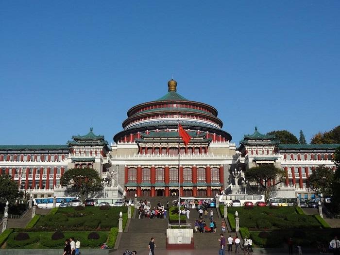 重庆市人民大礼堂位于重庆市渝中区人民路学田湾,是重庆独具特色的标志建筑物之一,是国家AAAA级旅游景区。