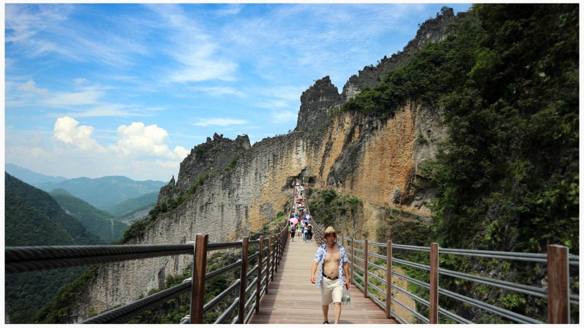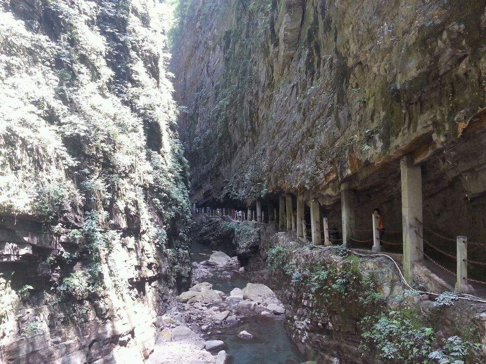 这条线路内容比较丰富,有山有水,有古香古色的古镇,还有美丽俊秀的峡谷,还可以体验一下北温泉,洗去一身的铅华。上段由于喀斯特地质作用,地面切割强烈,金刀神工般形成了独特的峡谷沟壑。石壁如削、两山岈合,垂直高度超过百米。