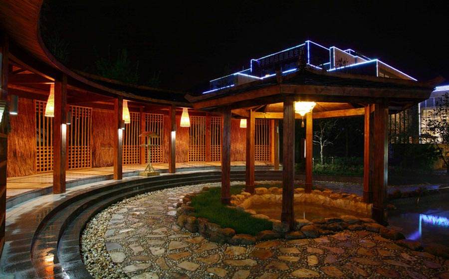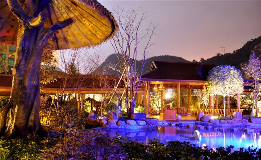 温泉区的各温泉点错落有致,有些在茂密的灌木丛旁,有些依在苍翠大树下,还有卡通人物簇拥的亲子温泉池。家庭式包房有床有桌,可休息,可聚会。此外,星级异国美食自助餐、超级动漫娱乐专区、儿童淘气堡等一应俱全,可一键开启全新的家庭度假方式。