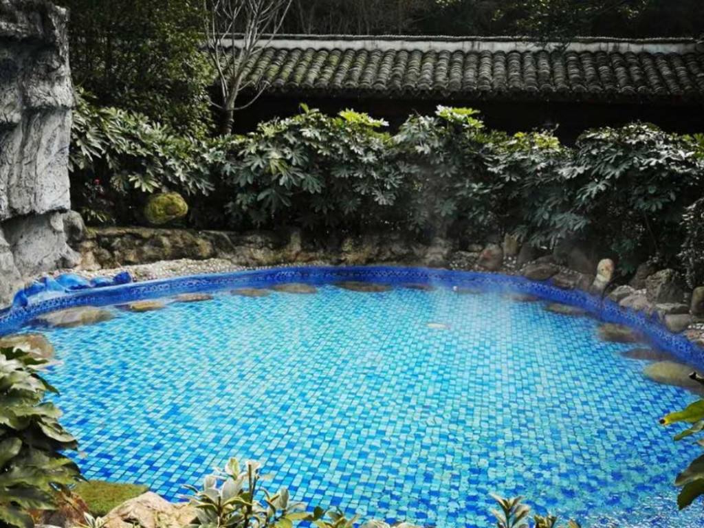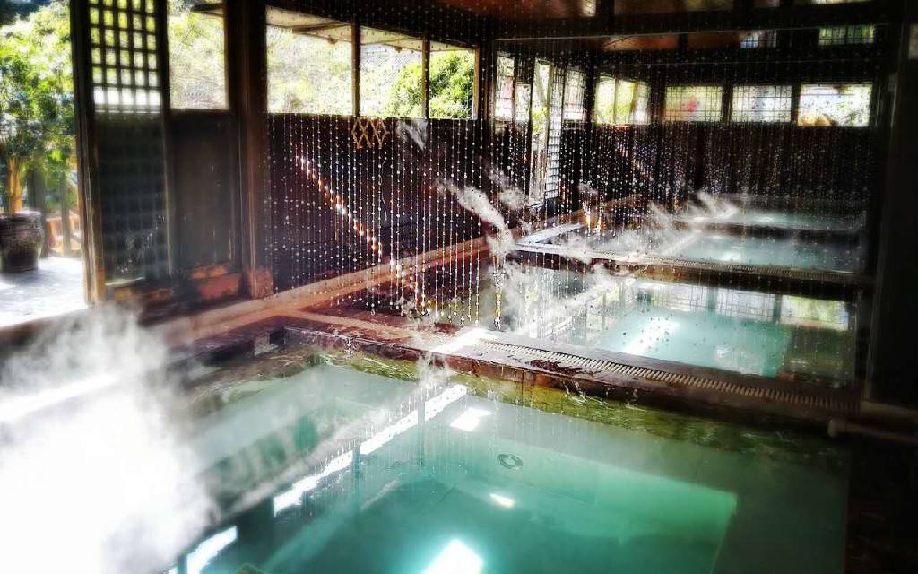 景区温泉水为中性泉,矿化度低、刺激性小,富含钙、镁、钾、钠等,有助于洗浴者缓解压力,促进血液循环。