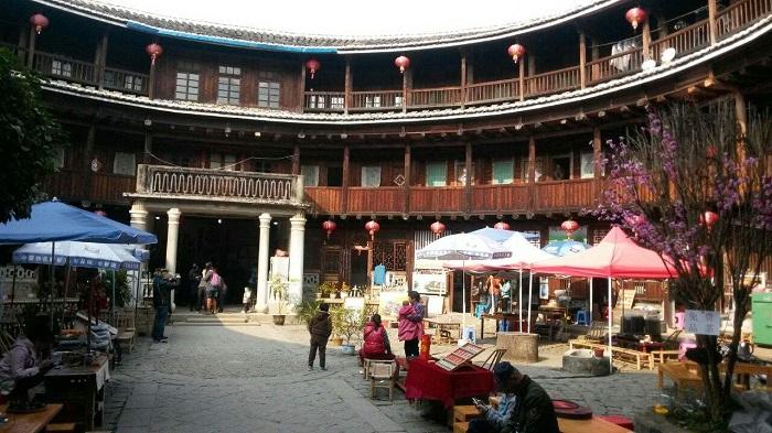 承启楼据传从明崇祯年间破土奠基,至清康熙年间竣工,历世3代,阅时半个世纪,其规模巨大,造型造型奇特,古色古香,充满浓郁的乡土气息。全国重点文物保护单位。世泽楼-建于清代嘉庆年间。大门口地面有鹅卵石铺成的古代钱币模型,它象征着招财进宝之意。楼内一门、二井、三堂、四梯,设计合理,完全符合家族群居的特点。