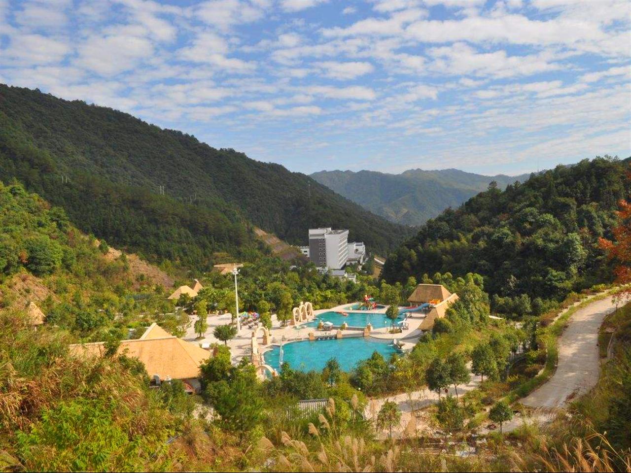 新丰云天海温泉原始森林度假村引占地面积4000多亩,为省内罕见的优质氡温泉。景区地形狭长,山势奇特,层峦叠嶂,林木茂盛,清澈溪水贯穿其中,负离子浓度高达10万个单位/立方厘米,经地质专家、环境艺术专家、旅游界专家一致公认新丰云天海温泉是目前广东省造价最高、最具休闲度假特色、最具吸引力、综合评价最高的温泉度假村。
