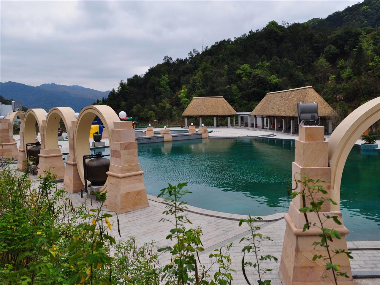 温泉游乐区以海洋文化为主题,72余种大小、功能不一的露天温泉池,有健身调元的各式加料养生温泉,星罗棋布于海滨园林之中。拥有全国独有的"温泉迷宫"和目前全国最大规模的海洋文化温泉,是粤东地区规模最大、档次最高、项目最齐全、设施最先进的特色温泉度假型酒店。