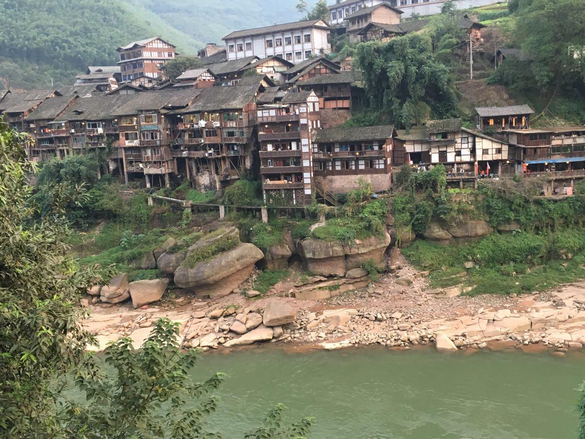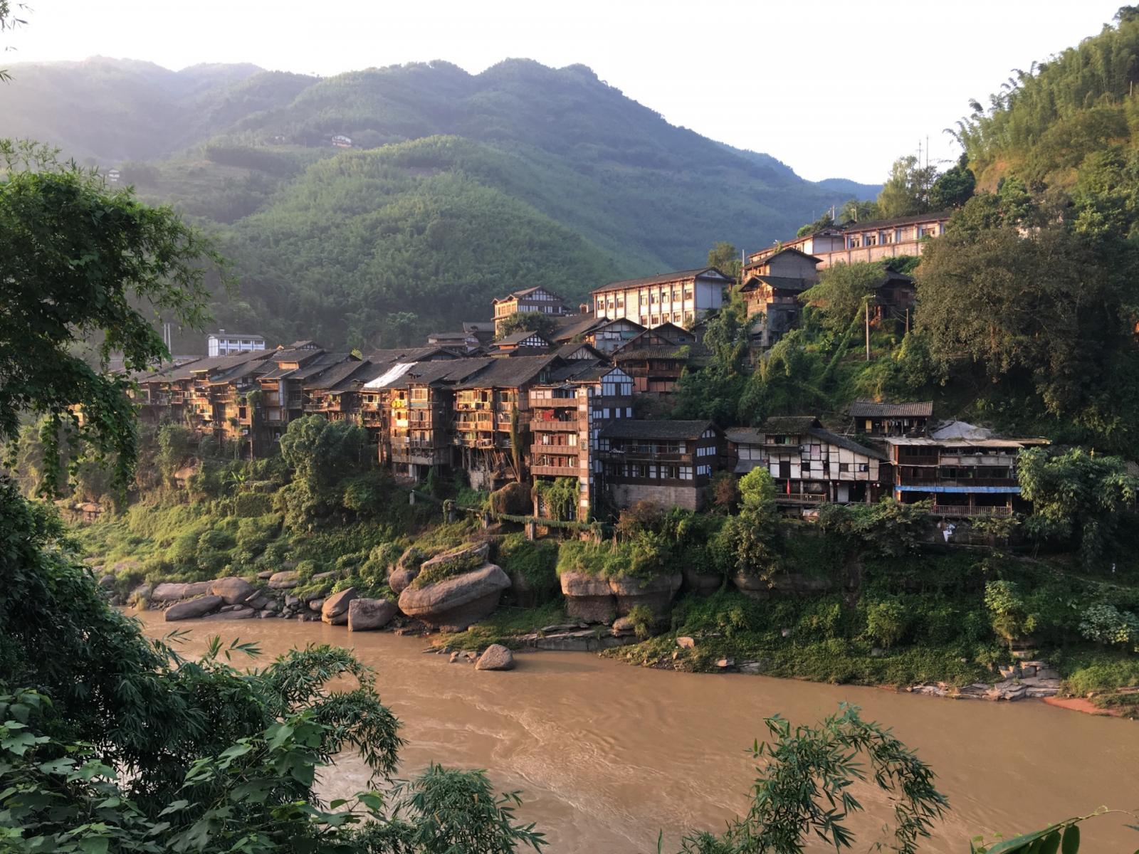 丙安古镇是个典型的川南黔北交界的古老场镇。“山高不见云,犹似在瑶台”,悬空的吊脚楼依河而建,背靠青山,恍惚间如同进入了某位漫画家的二次元空间。
