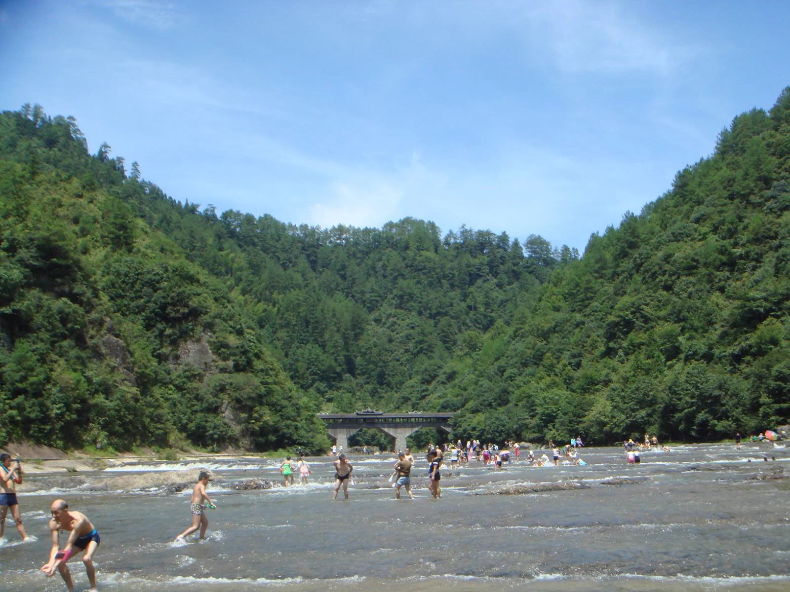 古梅、化龙、白云、桃源四洞,古寂幽 静,清气袭人,堪称洞天世界;黄鸡滩、白龙潭,清澈澄碧,风景宜人,集美丽传说和山水神韵于 一体;巨石溪床上奇形怪状的溶洞,据考是冰川遗迹,蔚为奇观。