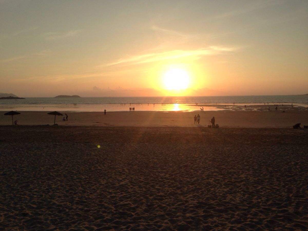 全岛海岸蜿蜒曲折,岸 线长达 408公里,其中 100多公里为优质海沙滩。平潭北、东、南面的长江澳、海坛湾、坛南湾三 大海滨沙滩,沙质细白,海水清澈湛蓝,而且面积大,相互连接,背后有葱郁的防护林带。海上有 岛屿岩礁,组合条件好,湾向性好。
