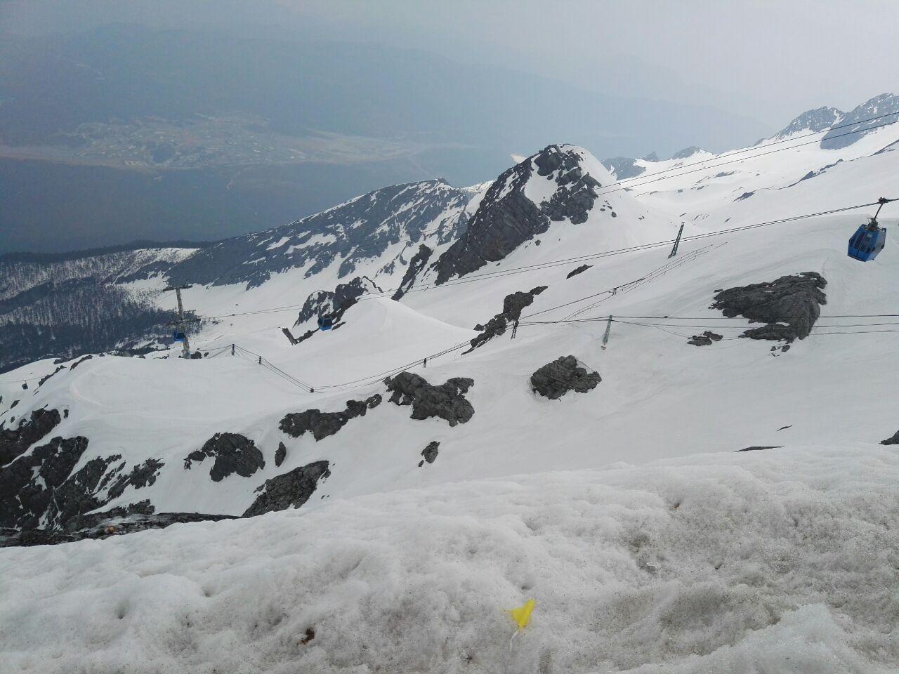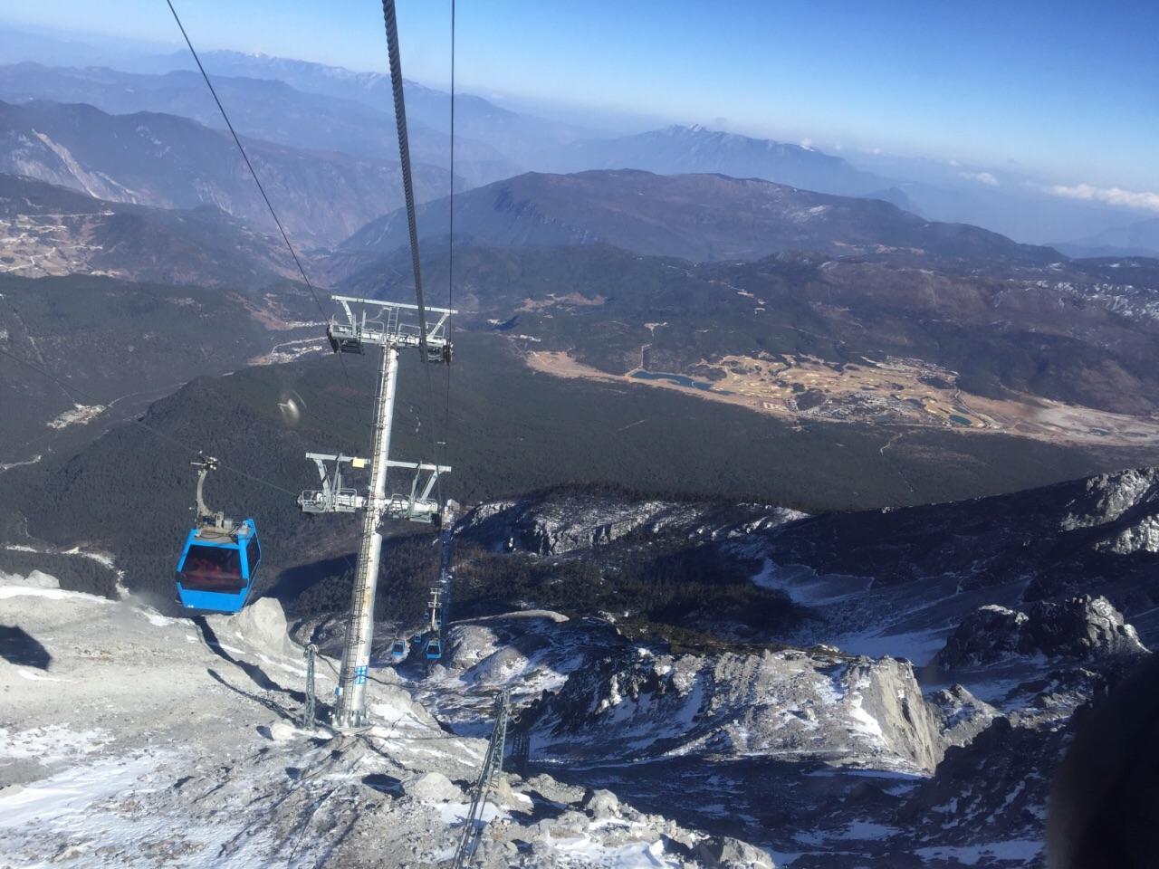 去冰川公园乘大索道,缆车会将你送到4506米的高处,出了索道,是冰川公园的休息站,可以看到最高峰,也能看到整个山脉和对面的景色。如果想要登顶4680米的最高处,剩下100多米的栈道要自己一步步地爬上去。