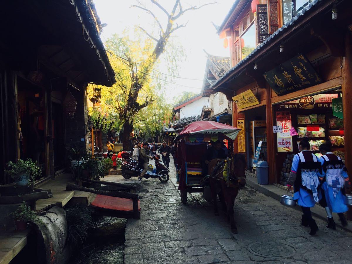 住在古城或者古城周边第一是方便晚上逛古城,其次是因为古城在市区中心,所以交通比较方便,去其它的景区也比较好找车。当然,找吃的也比较容易。但是市区中心的弊端就是去哪儿都比较容易堵车。