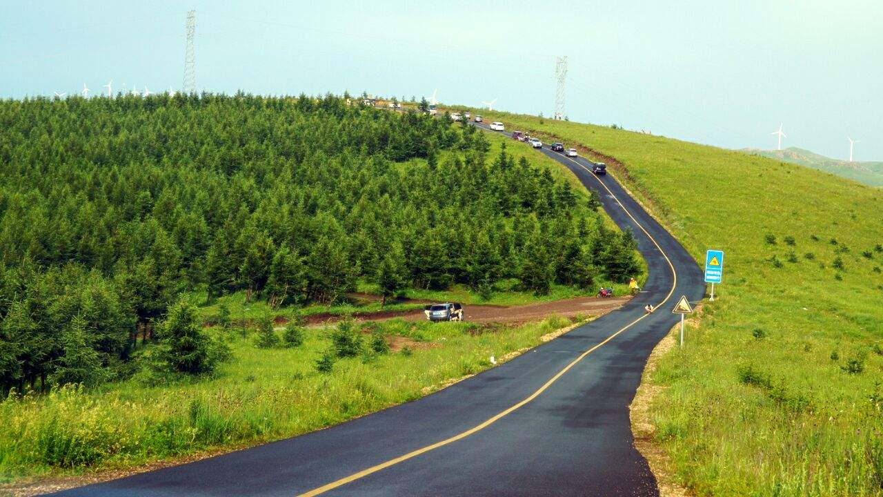 在全长132.7公里的“草原天路”上,可以看到蜿蜒的道路、湛蓝的天空、壮丽的草原、高大的风车。这条路是连接崇礼滑雪温泉大区和张北草原风情大区的一条重要通道。