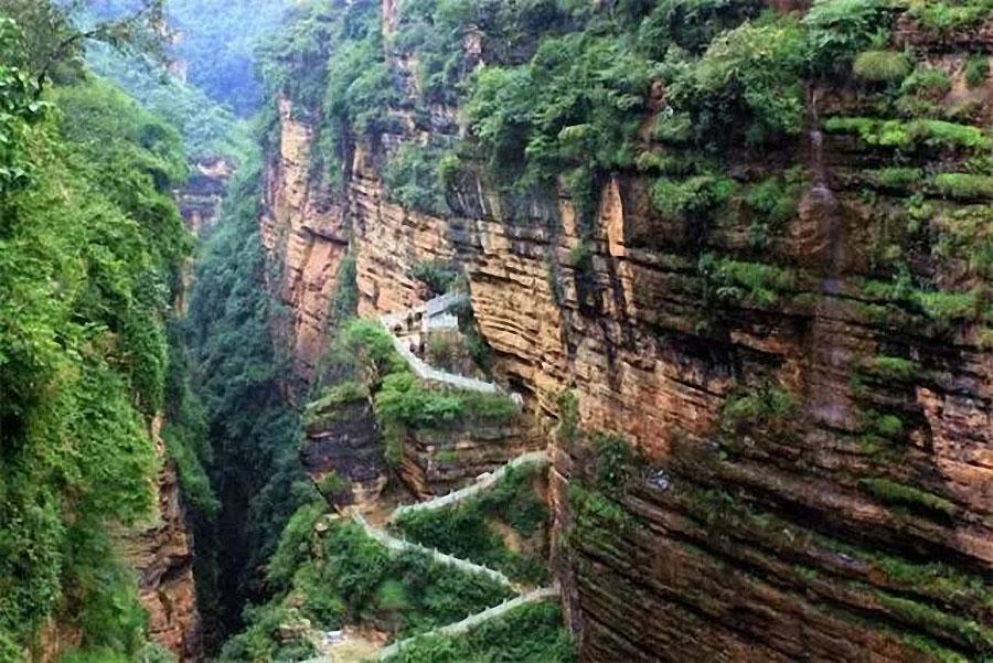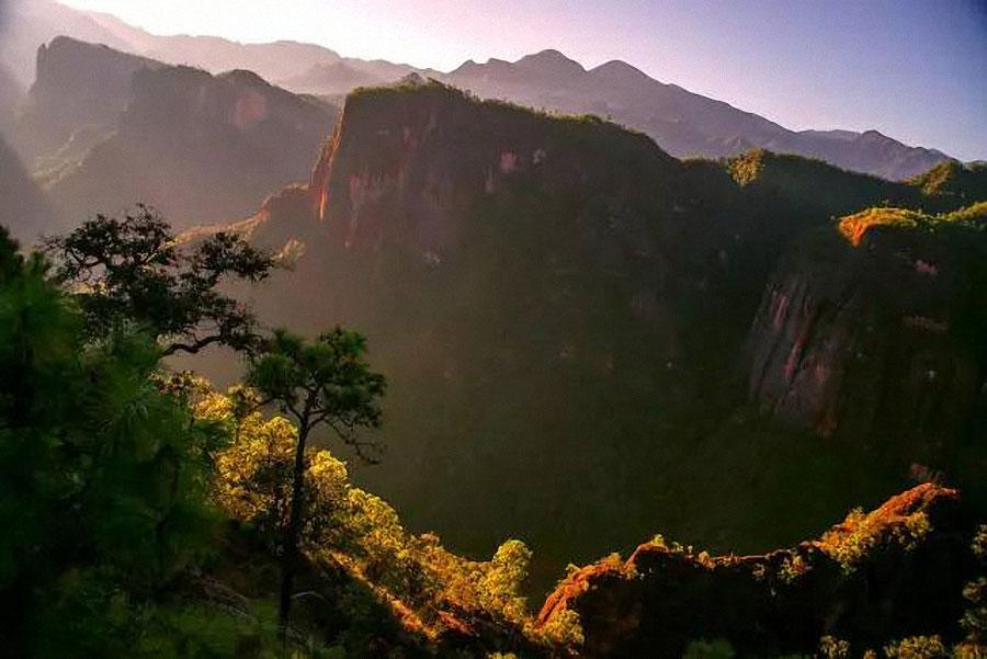 在武定大山深处藏着这么一个地质奇观--己衣大裂谷。大裂谷全长约12公里,最窄处约6米,裂谷两边悬崖对立,两侧绝壁间隙古树丰茂,谷底是湍流急下的大梁河,神秘壮观,举世罕见。