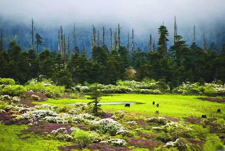 每年6-7月,碧塔海畔的杜鹃花争相斗艳,风吹飘落水中,游鱼吞食花瓣竟醉倒漂浮于水面。著名作家冯牧曾描写了这种景象,从此碧塔海“杜鹃醉鱼”的景观就扬名于世。