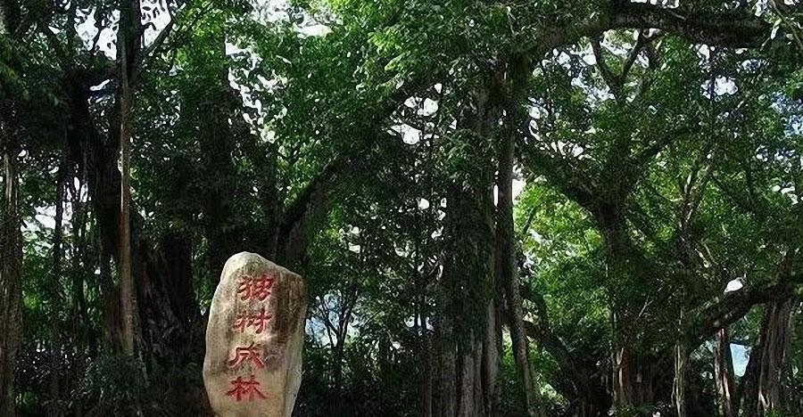 在西双版纳的打洛镇,有一棵古榕树独自长成一片森林。这棵树已200多年,树干生根,30多条根顺树而下,扎入土中,根根相连,曲曲卷卷,相交成林,犹如瀑布,这些柱根形状和颜色和古榕树一样,犹如一片森林。