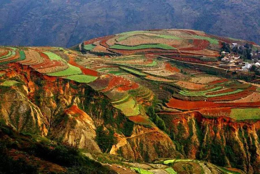 东川红土是一片壮观的土地,这里方圆近百里的区域是云南红土高原上最集中、最典型、最具特色的红土地。衬以蓝天、白云和那变幻莫测的光线,构成了红土地壮观的景色。