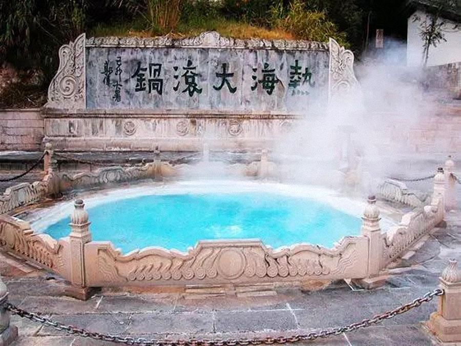 腾冲热海景区令人称奇,最著名的景点当数大滚锅了。热海的标志景点是大滚锅,昼夜翻滚沸腾,四季热气蒸腾,水温高达90度,可以煮蛋,如果人掉进去,后果非常严重。
