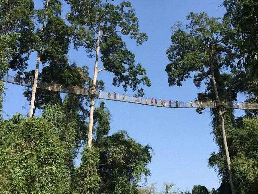 在繁茂的原始热带森林里,密密麻麻都是望天树,百米参天,一条蜿蜒数百米的走廊凌空其中。勐腊望天树景区内建有旅馆、空中走廊、南腊河观光游船、探险游道、丛林穿越等,既可游玩,也可住宿。如果你到望天树景区游玩,一定要去“空中走廊”体验一下那种令人既惊又险的感觉。