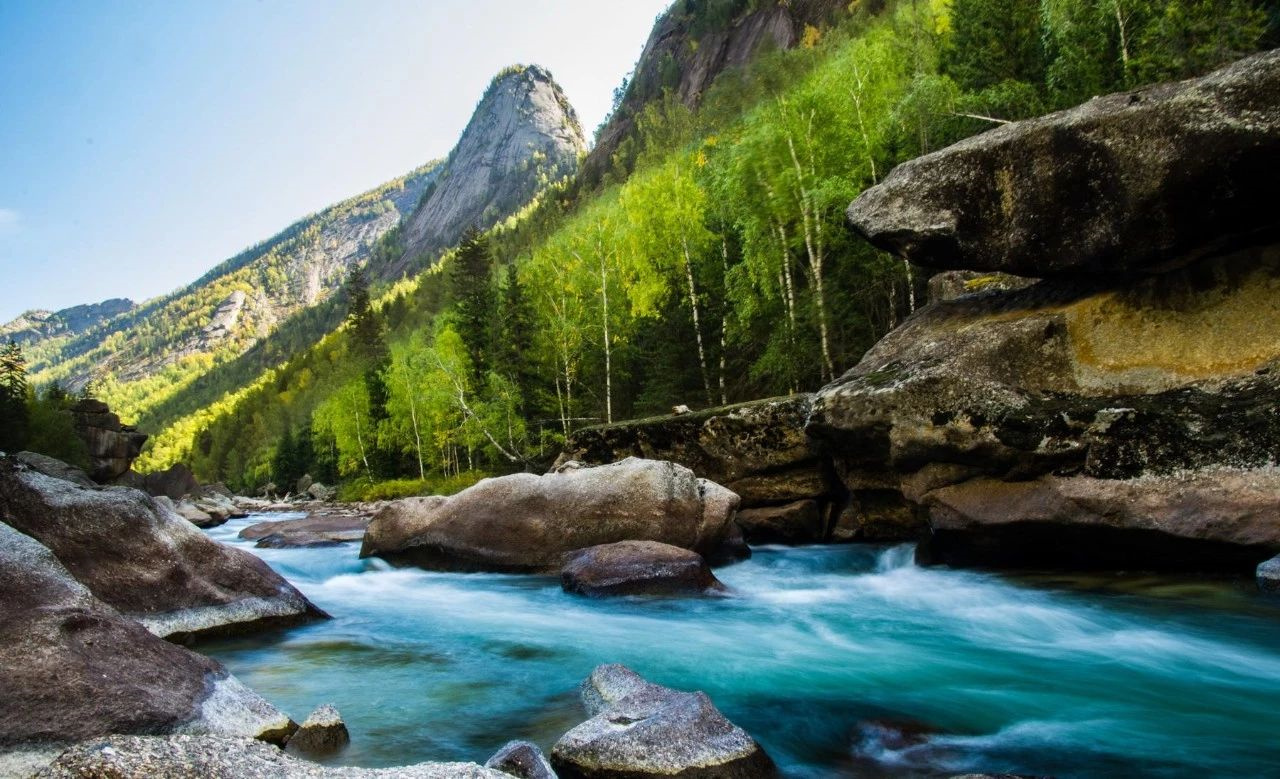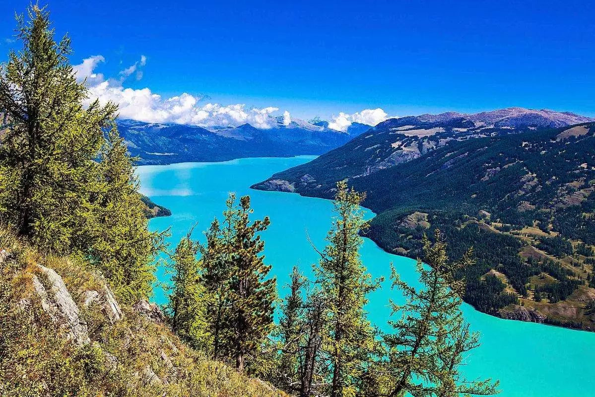 可可托海风景区暨可可托海国家地质公园,集优美峡谷河源风光、沼泽湿地景观、寒极湖泊、地质矿产资源等自然景色为一体。清澈的河流沿峡谷哗哗而过,四周陡峭山峰环抱。山林河水相映,树叶如花,苍茫如海。
