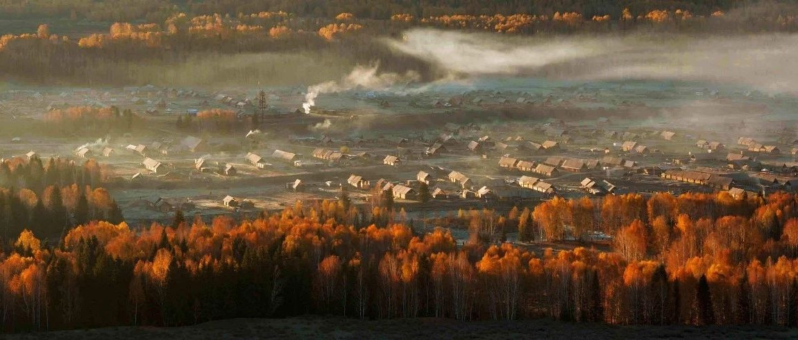 位于北疆阿勒泰地区布尔津县,喀纳斯湖东侧约30公里处,是一个由哈萨克人和图瓦人共同聚居的小村庄,充满原始味道。万山红遍的醉人秋色,炊烟在秋色中冉冉升起,形成一条梦幻般的烟雾带,胜似仙境。