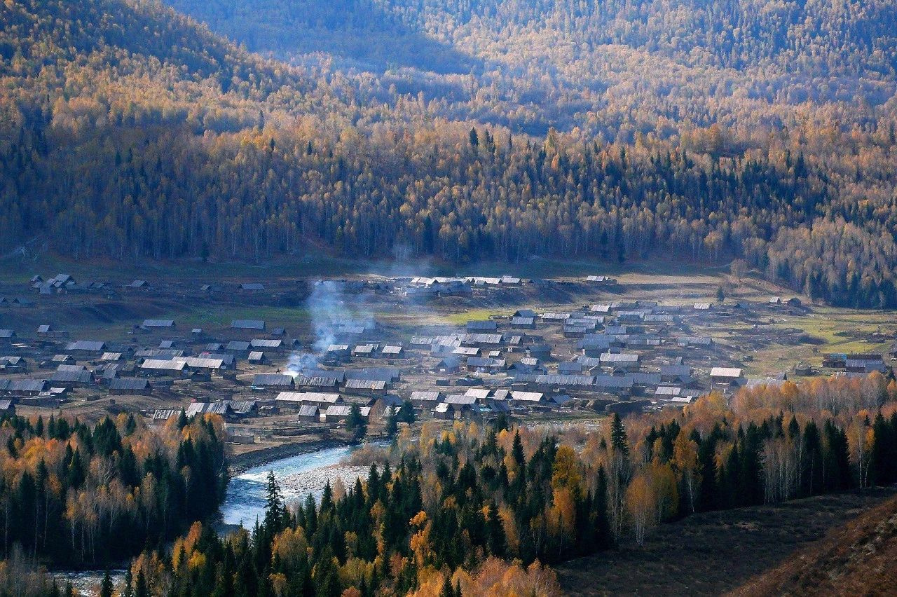 位于中国与哈萨克斯坦接壤的界河畔,是新疆阿勒泰地区图瓦人最集中的一个村子,被称为“中国西部第一村”。一年四季都美如油画,特别是在秋天。金黄的杨树叶,淡黄的落叶松,肆意流窜的金色把山村包围,宛若童话世界。