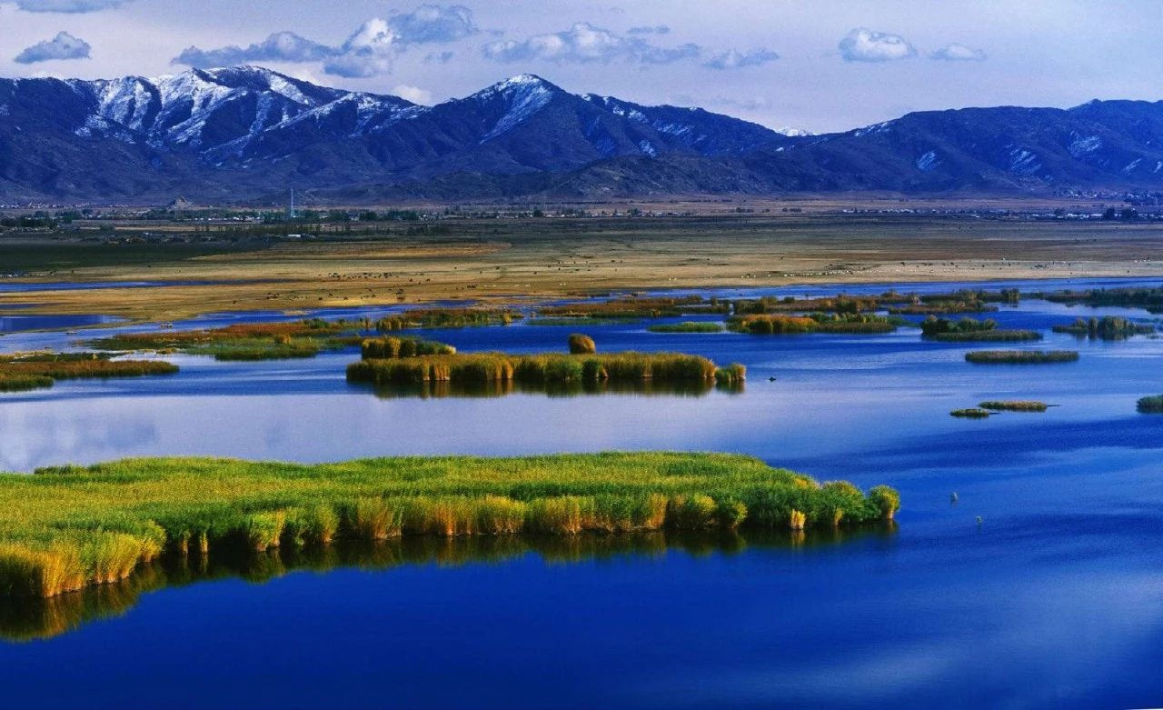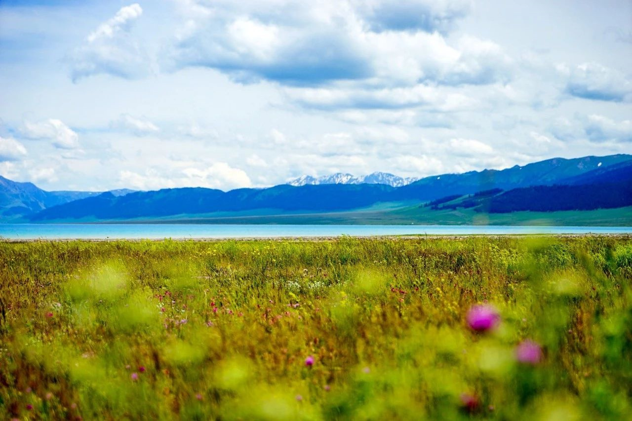 赛里木湖背靠雪山,终年不化,银装素裹。湖水碧蓝,湖边是广阔草原,牧马奔驰,牛驼踱步,静谧、温馨、粗犷深远、如诗如画……