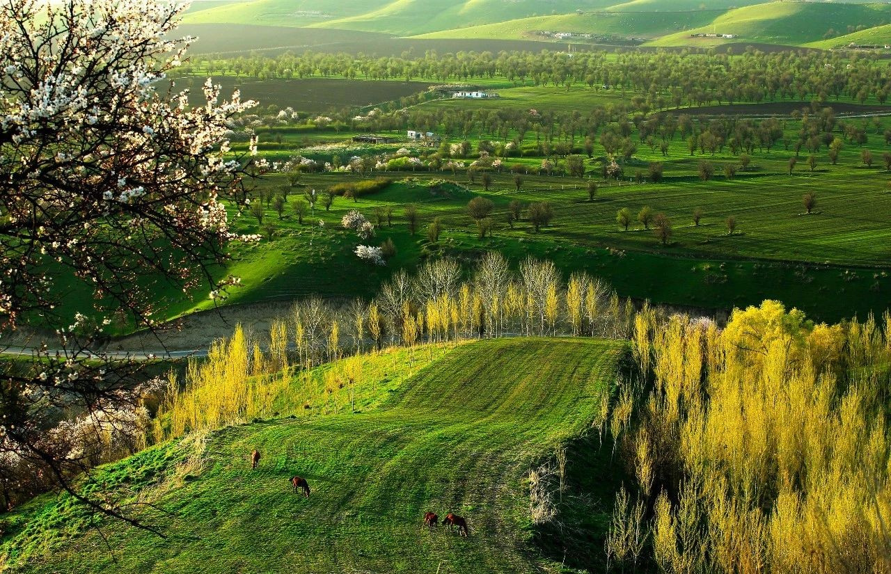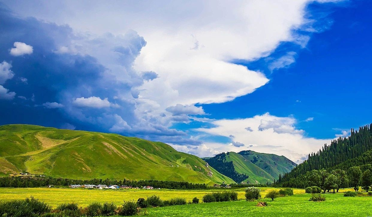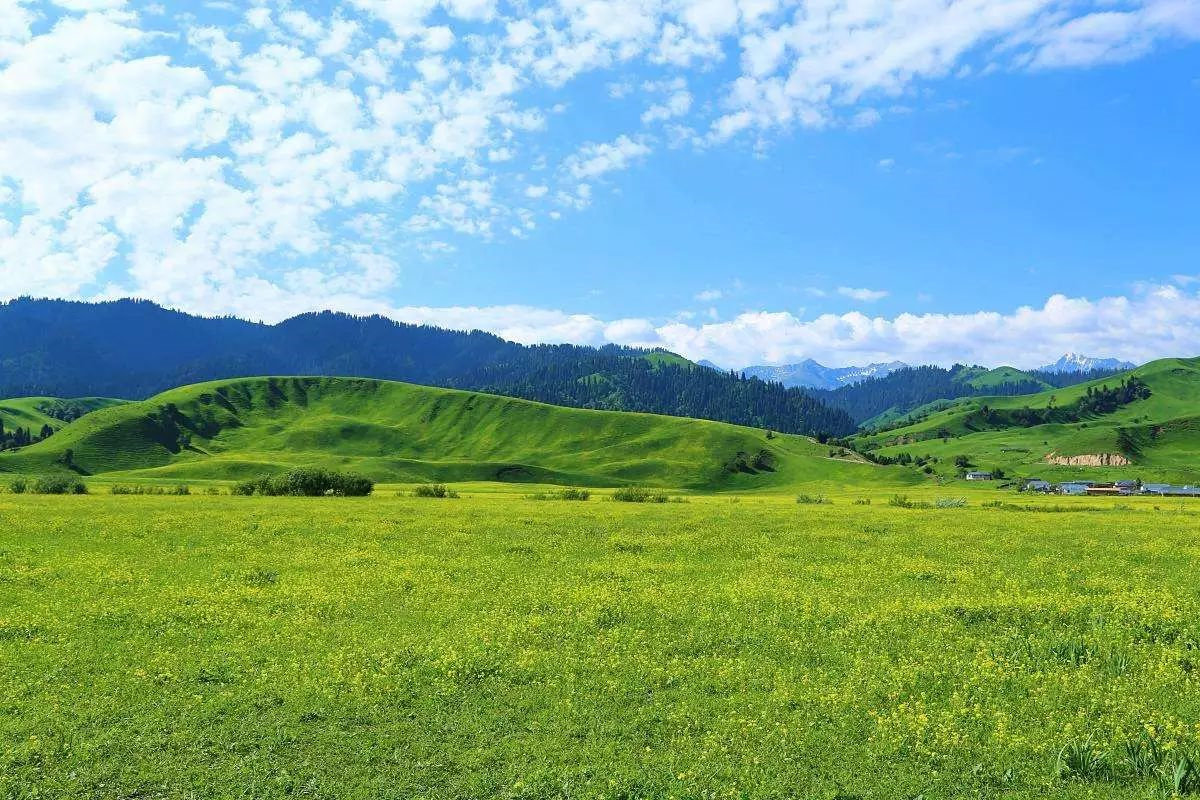 位于伊犁州新源县境内的那拉提草原,是世界四大草原之一的亚高山草甸植物区,自古以来就是著名的牧场。河道交错,森林茂密,莽原展缓起伏,松塔沿沟擎柱,还有毡房点点,畜群云移。