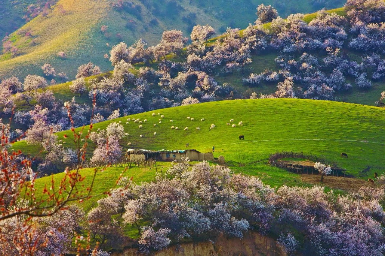 位于伊犁河谷阿吾拉勒山南麓的杏花沟,气候湿润,水汽充沛。三万多亩原始野生杏树林,花开时节,如同童话世界。