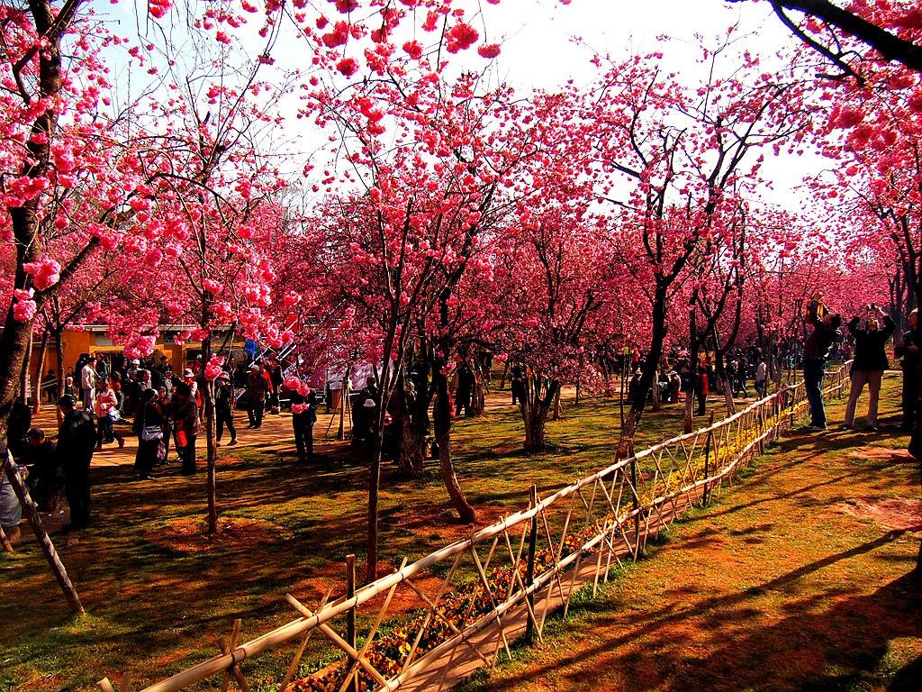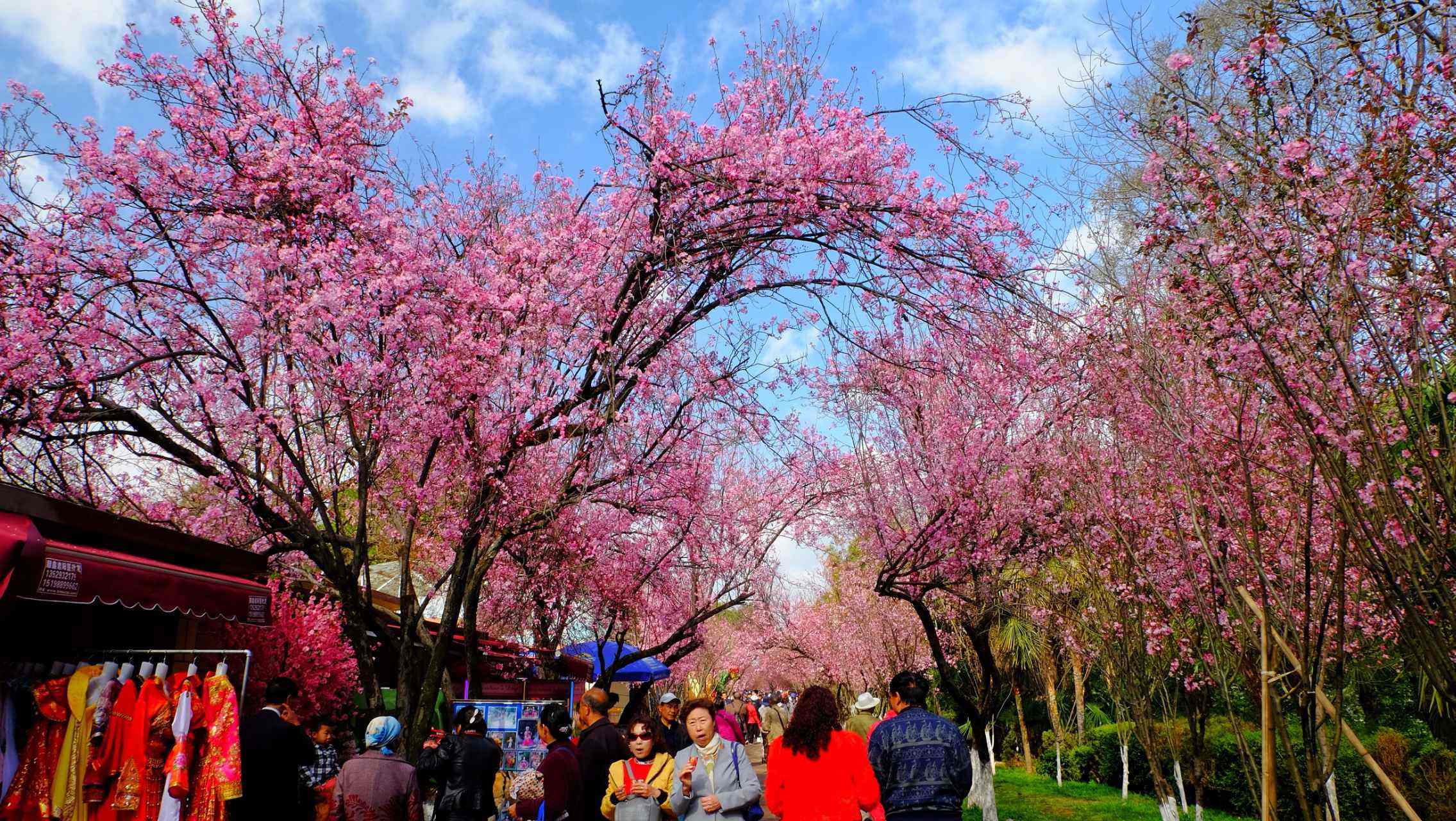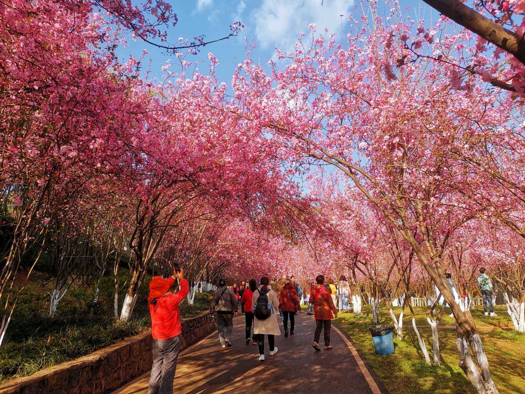 除了圆通山赏樱之外,若离安宁近的朋友,还可以到青龙镇一路向前骑行赏樱,长达10公里的樱花隧道,让你感受另一种樱花美!