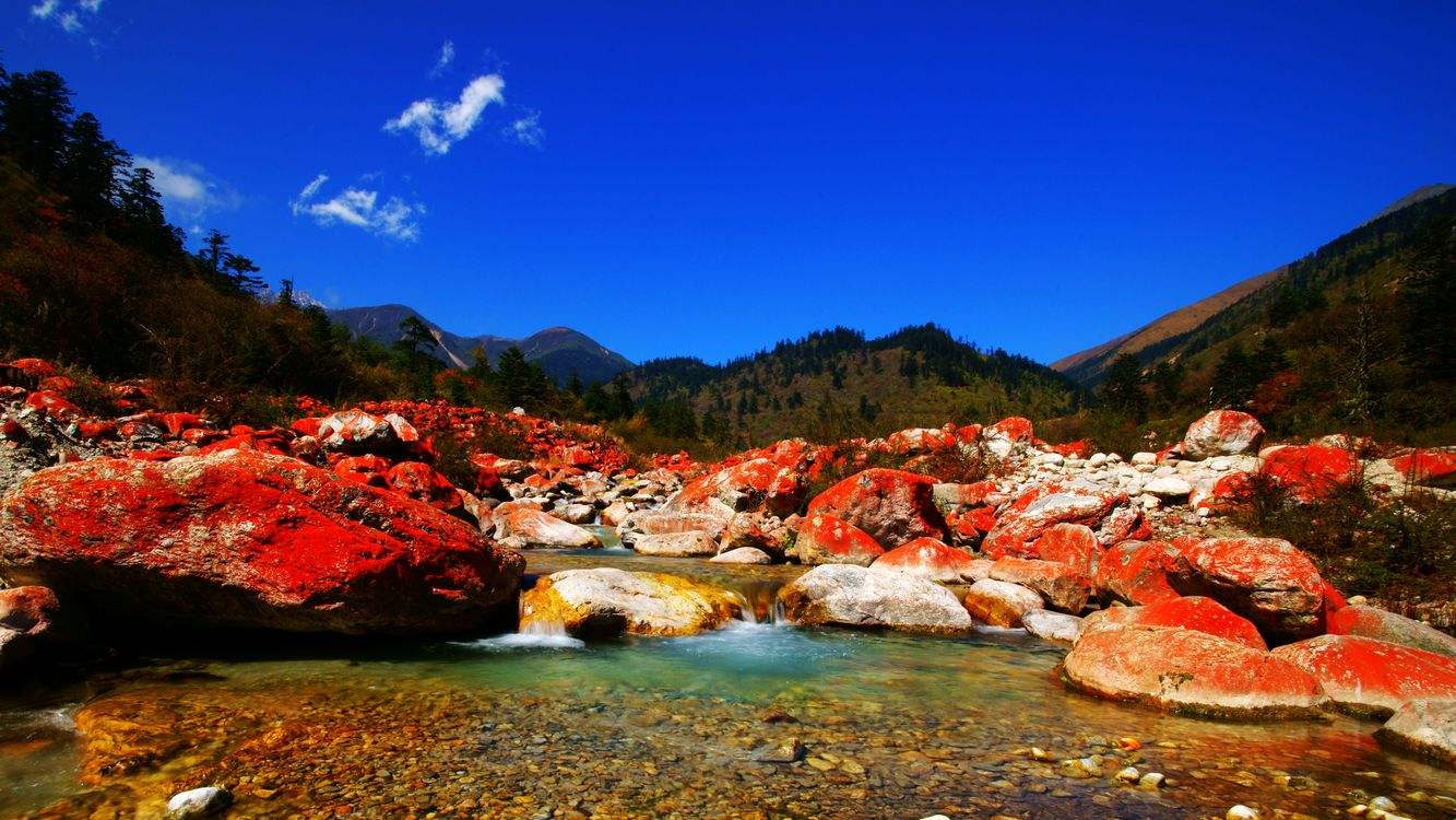 红石是大自然赐给海螺沟最珍惜的物种之一。在海螺沟、燕子沟、南门关沟、雅家埂都分布着大面积的红石滩。