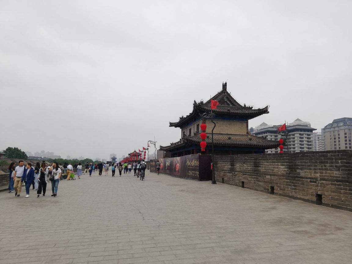 碑林博物馆旁边是西安城墙,如果时间充裕可以就近逛城墙,一般的城墙玩法是租自行车在城墙上溜达一圈儿,但现在随着汉服的“兴起”,有很多人选择穿汉服登城墙,然后拍一组美美哒皂片。