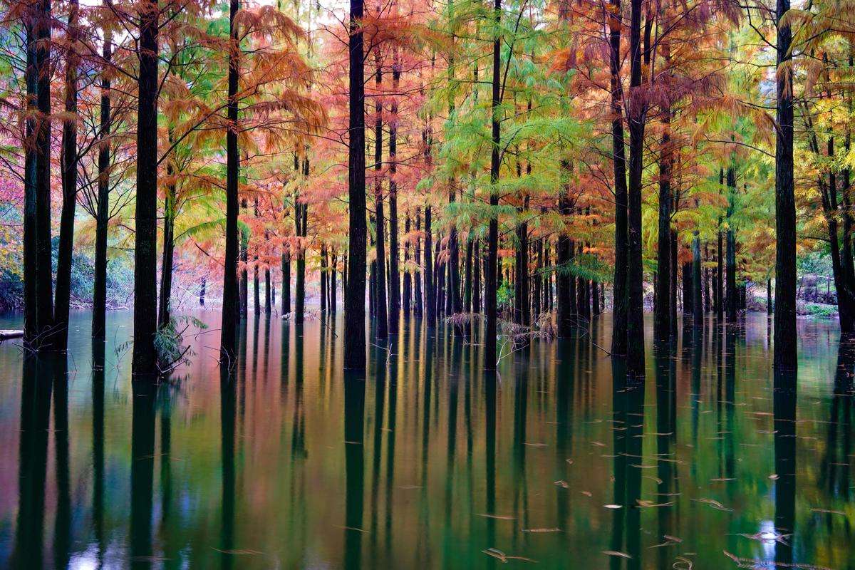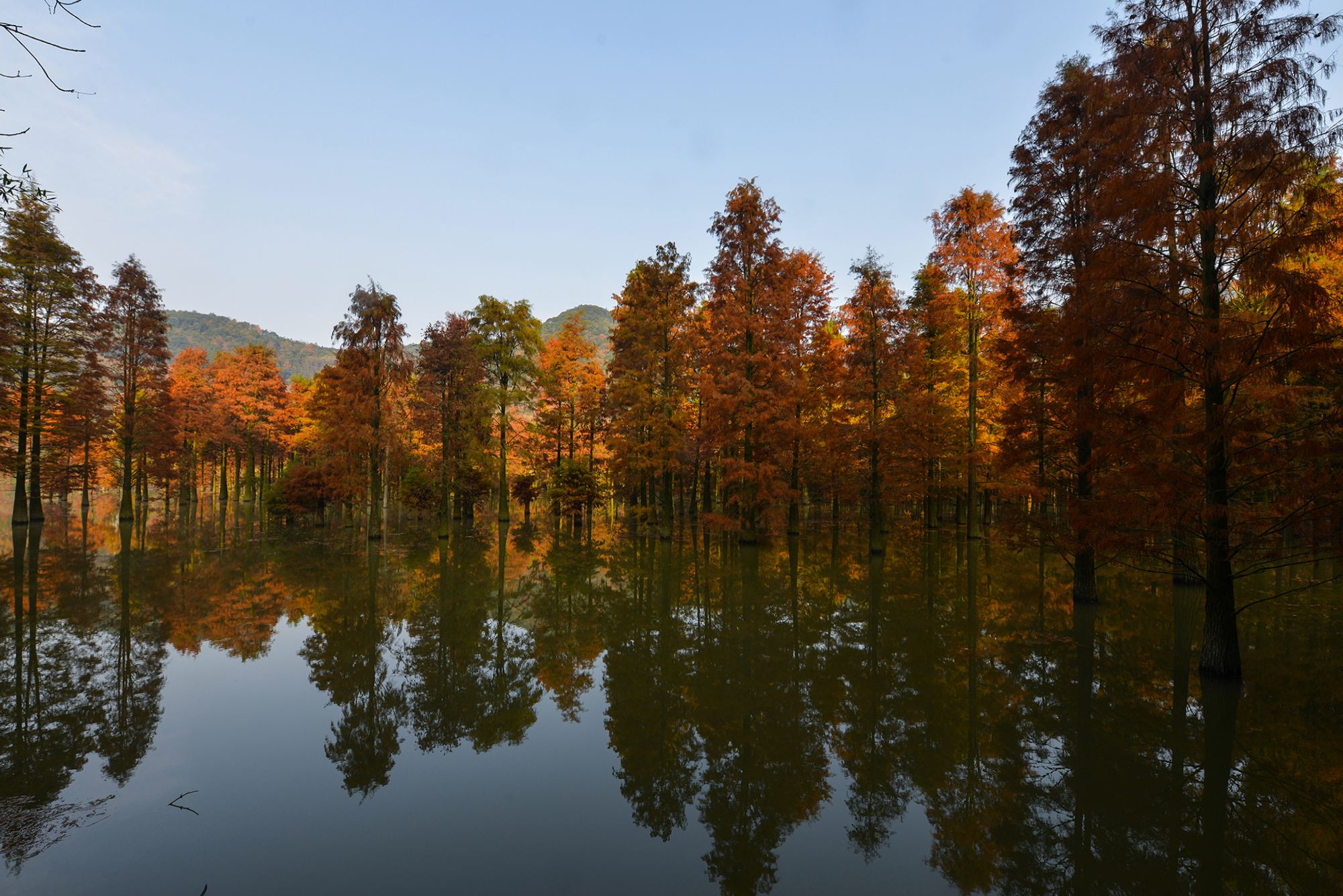 石井水库是一座小型水库,周边群山环抱,十分幽静。而它的别样之处是库尾的水杉林,车开到水库边,可以见到没有修整过的泥巴路,千万不要就此停下,继续沿着蜿蜒小路往前开一到两公里路,便能见着这一处秘境了。