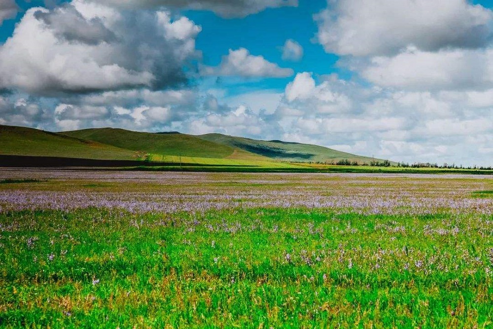 夏季是草原最热闹的时候,一望无际的原野上生长着许多不知名的花儿,雪白的羊群像四处飘散的柳絮,又像风吹动的棉团。眺望远方,湛蓝清澈的天空与这宁静和谐的世界连在了一起,仿佛自己也融入了这一片天地之中,静静地聆听来自风的私语,远离城市的喧嚣,感受人与自然的美,忘却了所有的忧伤与烦恼,任眼前的一切洗涤着浮躁的心。