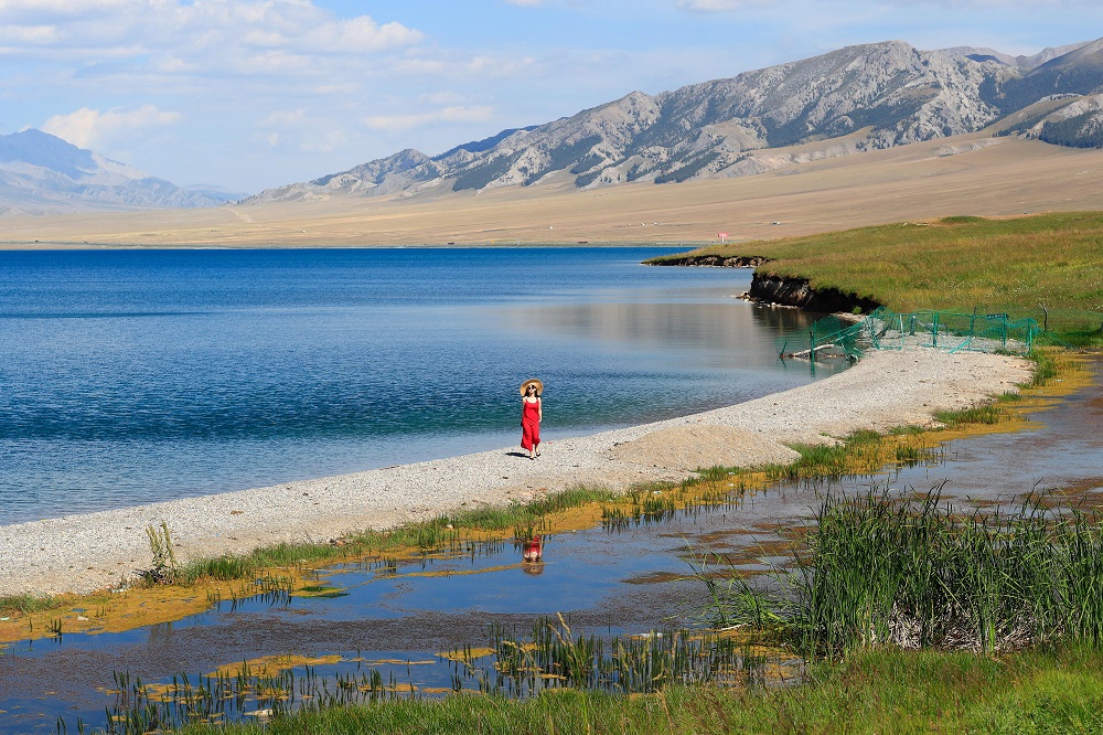 “面朝大海“喂马劈柴,赛里木湖背靠雪山,湖水清澈蔚蓝,幽蓝而又深邃,湖边是广阔的草原,孩子在这里奔跑,在这里欢笑,成群的牛羊悠悠的吃草,还有什么比这更美好的呢。