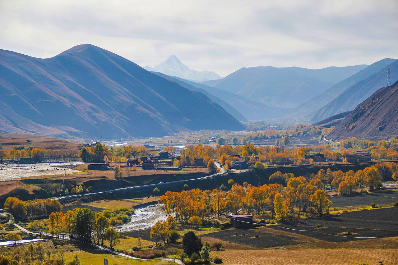 你会遇见光影成谜的新都桥,连绵的山峦、星星点点的牛羊,棵棵挺拔的白桦、错落有致的藏寨,都是光影画卷中的一笔。