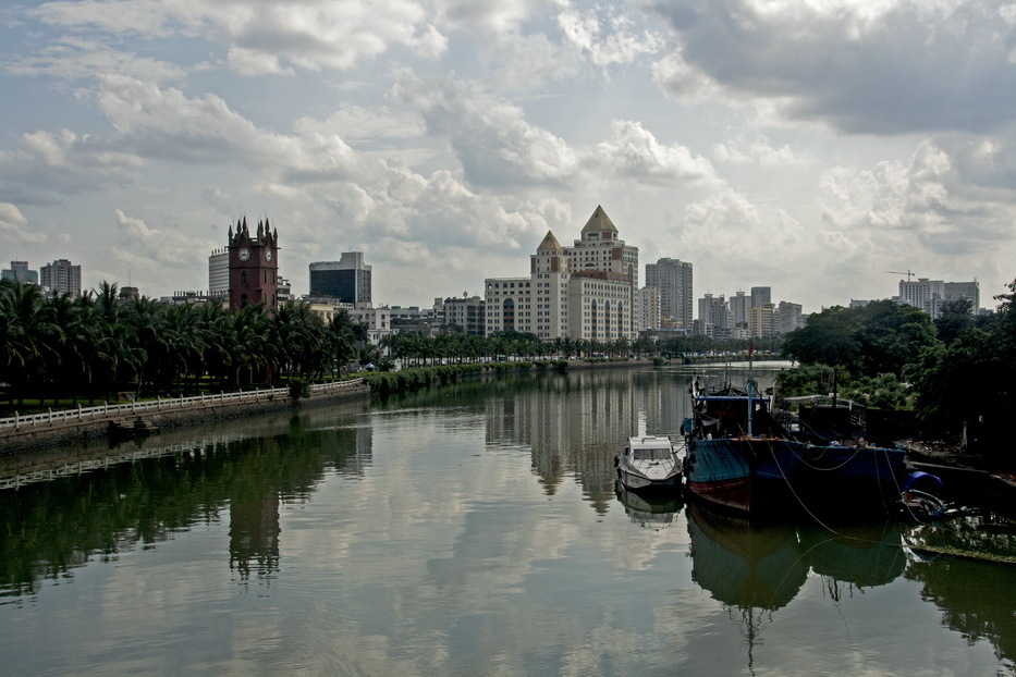 海口钟楼,是海口市的标志性建筑,也是这个座城市的象征,最早是为适应对外通商而建立,由爱国商人周成梅先生发动海外侨胞捐款集资而建,楼高五层,墙体用红砖砌筑,白石灰塞缝。钟楼孤立于长堤路,面向入海口,南面中山横街与中山路相对,北临海甸溪。如今的海口钟楼是1987年依照旧钟楼原貌拨款改建。建成后成为海口一大景致,命名为“古钟新声”。