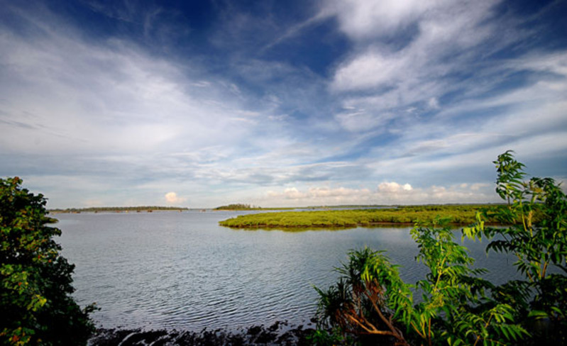 游玩东寨港红树林保护区,一定要坐游船,这样才能全面欣赏到红树林的景色。红树林在涨潮的时候除了树冠几乎全部都淹没在水里,到了退潮的时候才渐渐露出树干,坐船沿海道蜿而过,沿途都是半淹在水中的红树林。由于离市区较远,这里的游人很少,是个很清静的地方,适合来散心,亲近自然。景区周边有当地村民卖咸水鸭蛋和海鲜,味道不错而且很实惠。