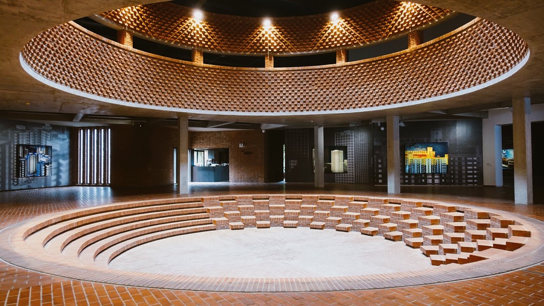 红砖美术馆作为新晋的网红打卡圣地,可谓是特点满满,红色方砖堆砌而成的的各种造型是凹造型的不二选择。主厅的圆形天井和''八连洞''的完美透视效果更是声名在外。红砖美术馆的进门天井,上下两层以同心圆形式交相辉映。小厨子在网上看到的第一眼就迷上了,电影《缝纫机乐队》曾在此取景,所以必须来打卡一张。还有''八连洞'',八个砖砌圆洞形成完美透视效果,不少明星都在此打卡留念。还有十字架红砖墙,也是在院子里面,红色砖体摆出一个镂空的十字架图案,很好看的。