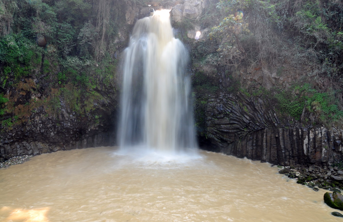 大盈江的流水流经此处,由于四周都是悬崖峭壁,流水从30米的高岩上跌落,形成了这大自然的奇观,响声雷动,水花四溅,非常壮观,大有武侠小说里隐世高人在此修炼的既视感。
